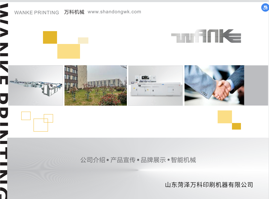山東菏澤萬科印刷包裝機(jī)器有限公司成立于2000年,專業(yè)開發(fā)新型裝訂設(shè)備,擁有多位國內(nèi)實(shí)力專業(yè)工程師,經(jīng)驗(yàn)的服務(wù)團(tuán)隊(duì),技術(shù)先進(jìn)。 萬科印機(jī)堅(jiān)持“不斷創(chuàng)新”的戰(zhàn)略方針服務(wù)客戶。 書封勒口聯(lián)動(dòng)線,對已膠訂好的勒口的書本可一次加工成成品,工序是裁切前口、封面壓痕、封面勒口、書本兩側(cè)面裁切。